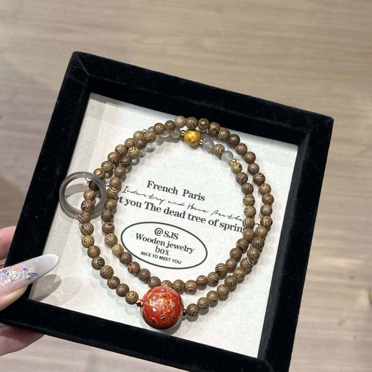 wood with lacquer bead